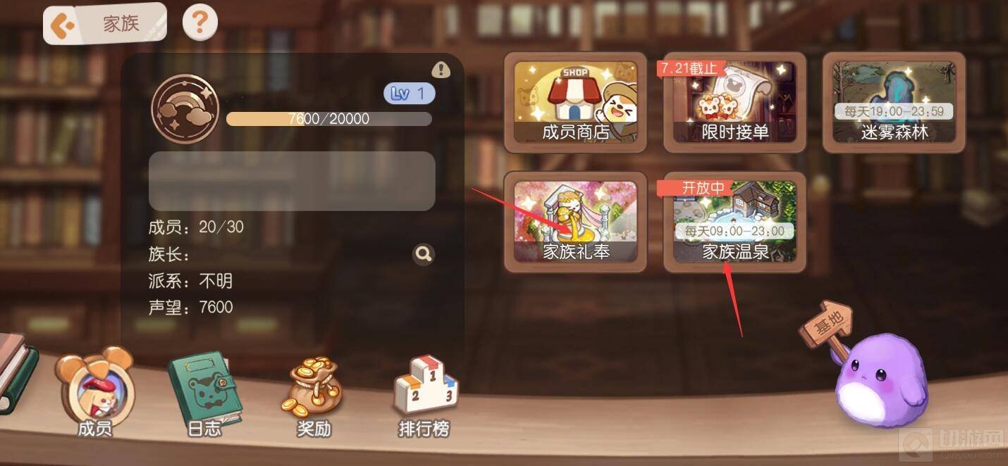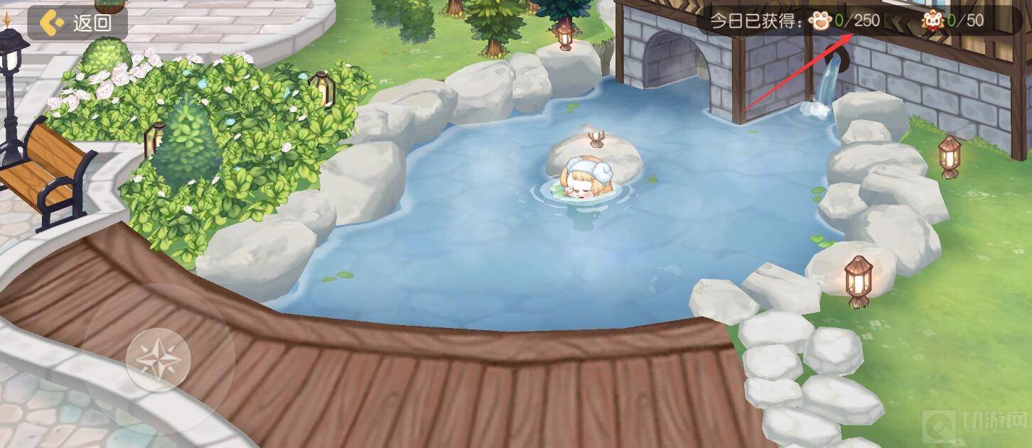 2. 家族温泉:每天9:00~23:00开启,进入温泉中,每隔一段时间就会自动获得声望,每天最多获得250点。