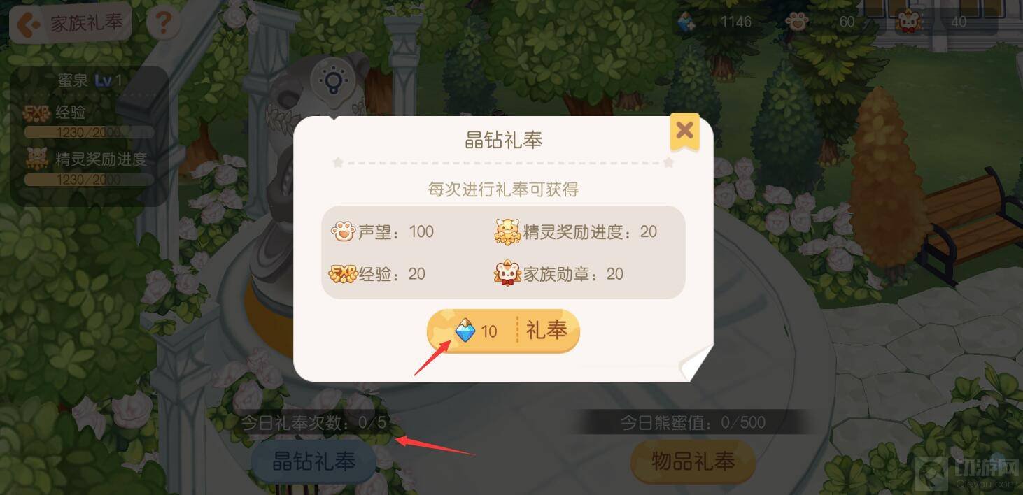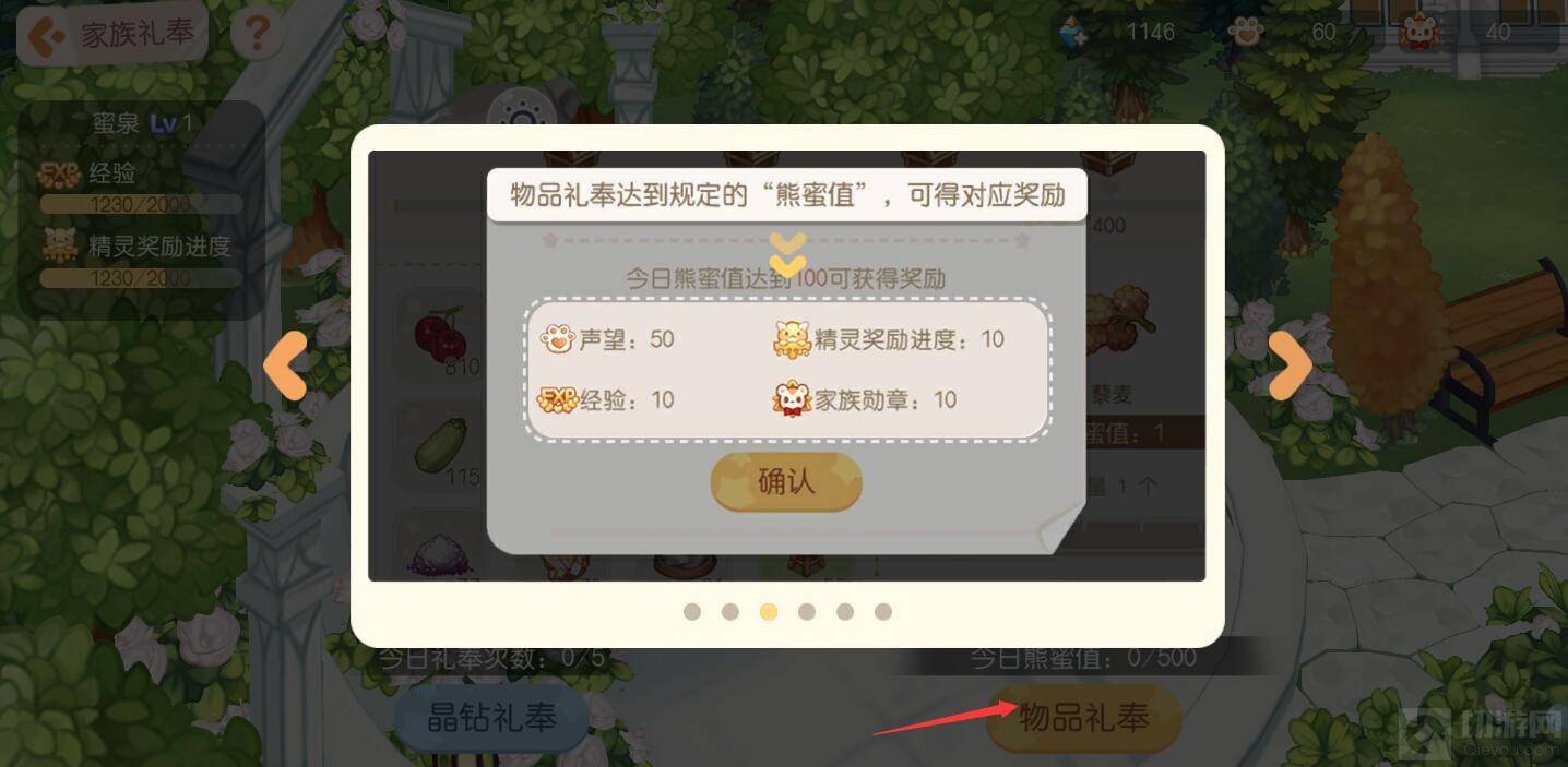 ②物品礼奉:通过提交物品可获得熊蜜值,达到规定熊蜜值可获得对应奖励,其中包括声望,每天最多获得500熊蜜值。