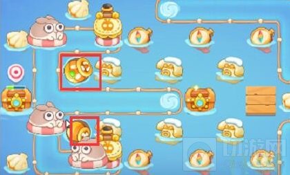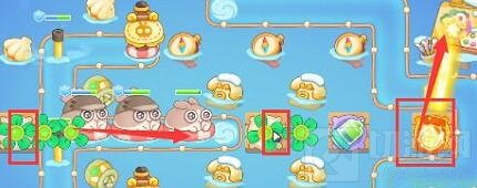 1、刚开始的时候,地图上面就有两个鱼雷炮,进行升级,清理兔子和障碍物。