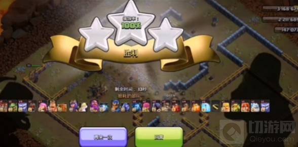 2、右边下闰土,左边地震开墙,下毒药清理小猎犬,然后给女王和投石炮冰冻,右边冰住闰土。冻住大本,女王直接开大打大本。下清边部队,大家等弓箭手锁定攻击女王之后,下弓箭手,猎手。最终等待超级炸弹打一下伤害和冰冻,即可完成3星挑战。