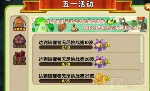 植物大战僵尸2破罐者在哪里玩?在游戏中有部分玩家的此还不太了解。接下来让为大家介绍一下吧。 植物大战僵尸2破罐者位置: 1、先进入游戏,然后点击屏幕左下角的图标,进入五一活动之后选择立即前往。 2、进
