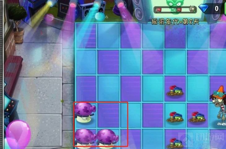 1、这一关使用传送带上的植物抵挡僵尸进攻,建议将潜伏芹菜升级到三阶,大喷菇最少升级到二阶。比较靠后才开启这个摇滚年代,所以出来的僵尸4级居多。过这一关的前提是大喷菇要升到3级,潜伏芹菜3级,和僵尸的等级相当就行了。