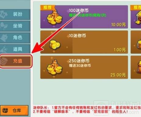 4.或者在大厅直接点击顶部迷你币旁边的“ ”号进入充值界面。