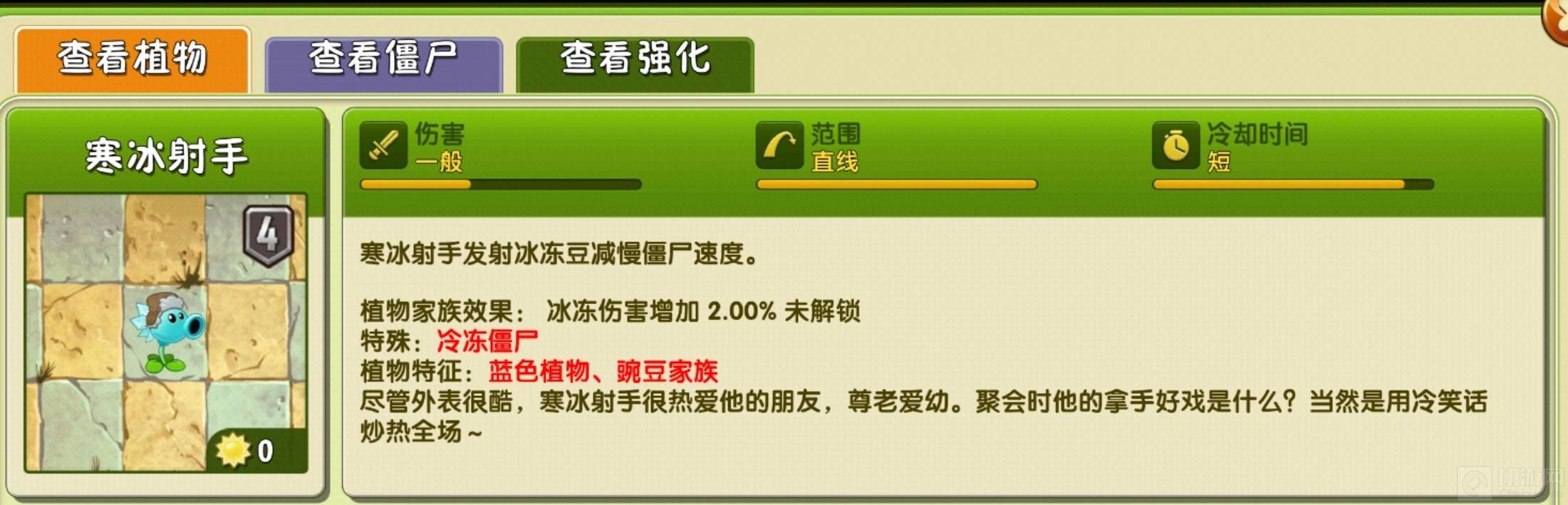 3、也可以用寒冰射手这种冷冻性植物,减慢飞行僵尸飞行的速度,再用攻击性植物进行攻击。