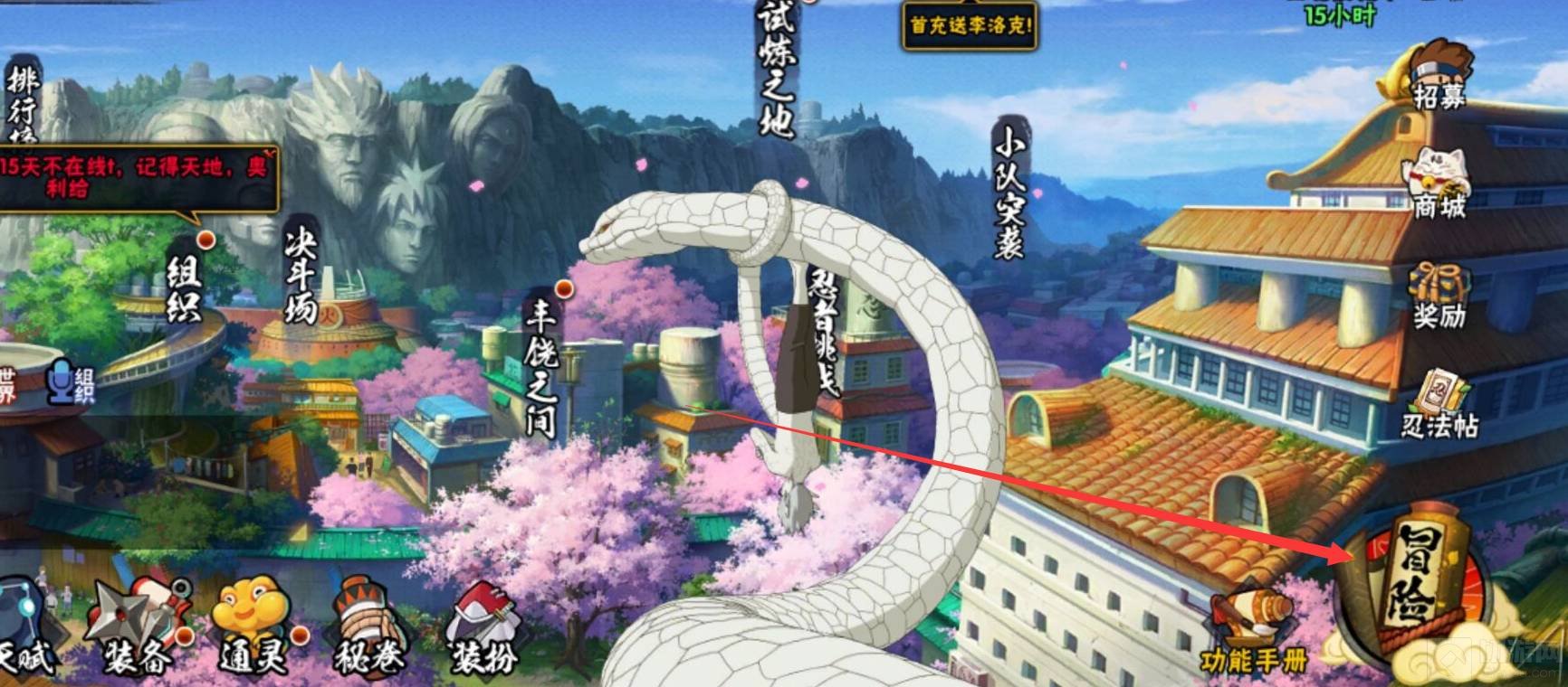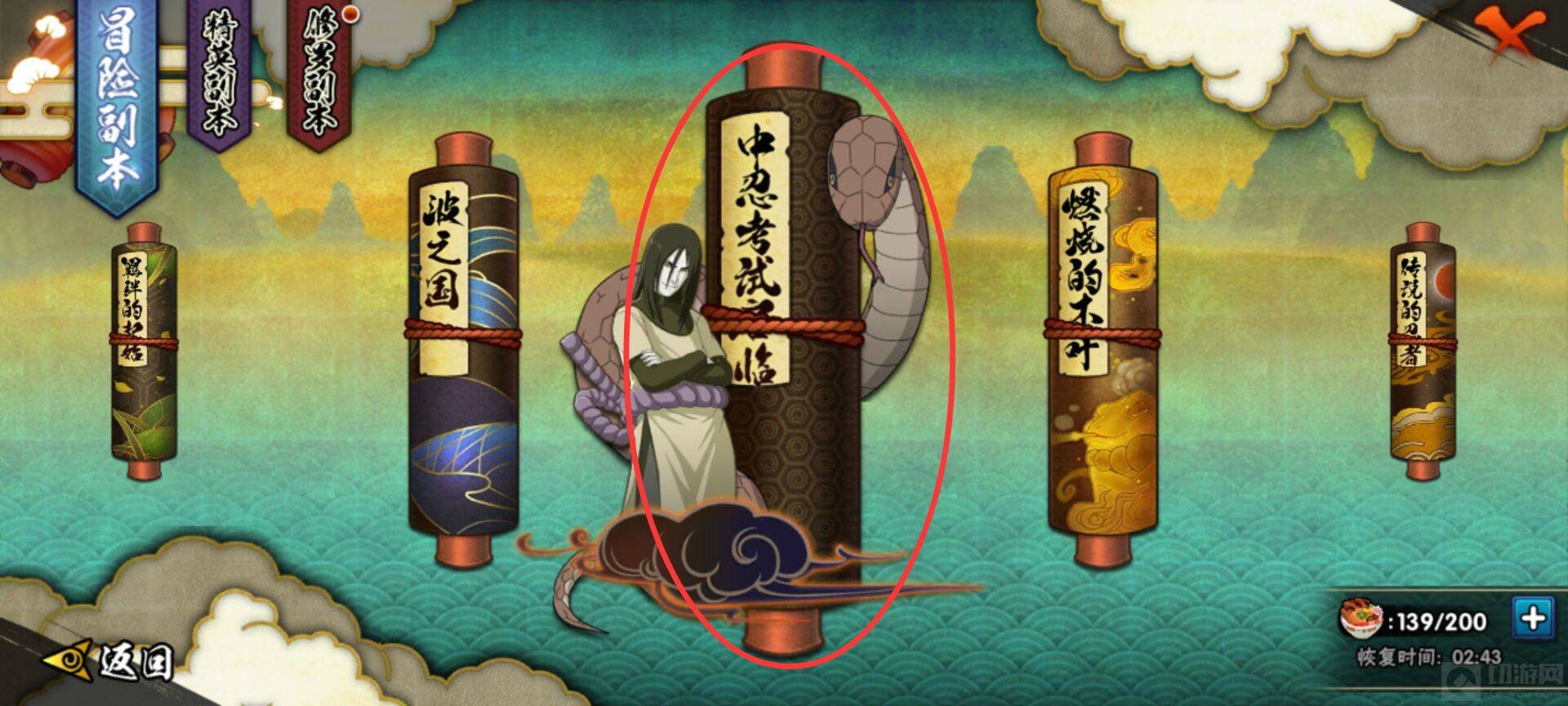 火影忍者手游副本3-2在哪?在游戏中有部分玩家对此还不太了解。接下来让为大家介绍一下吧。 火影忍者手游副本3-2位置: 1.先在右下角找到冒险,然后点击进去。 2.找到名叫中忍考试启临的卷轴然后点