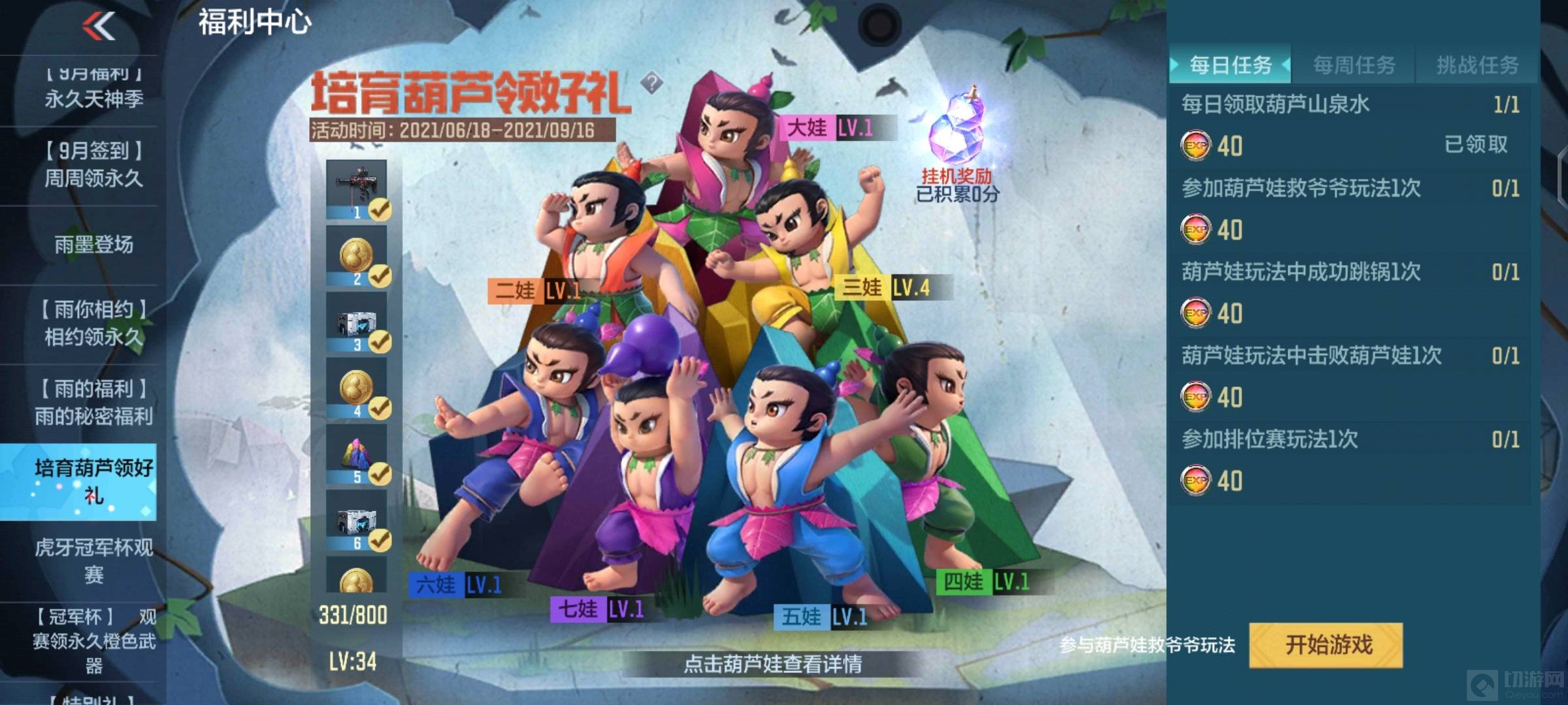通过活动内的每日任务可以领取奖励葫芦币,葫芦币可以兑换游戏道具及装备。