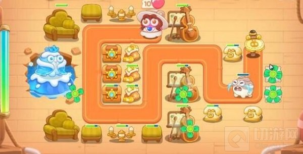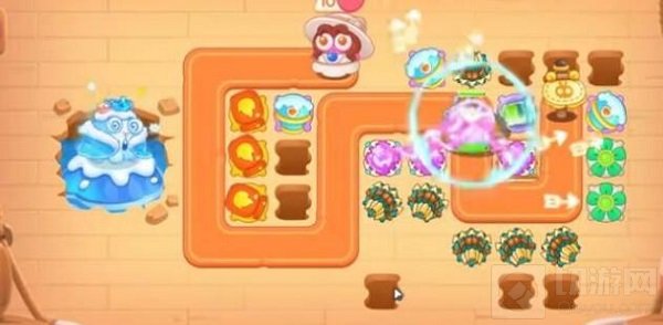 1、刚开始的时候,在门口位置放置两个风扇,清理障碍和兔子,接下来有金币的时候,放置多重箭,多重箭打大提琴,获得金币就可以升级多重箭,出口的斜上方放置一个毒针,用来对付上面和出口的兔子。
