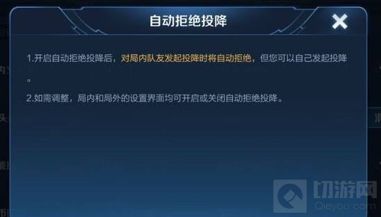 以上便是王者荣耀自动拒绝投降在哪里设置的回答,能帮助到大家,祝大家游戏愉快!