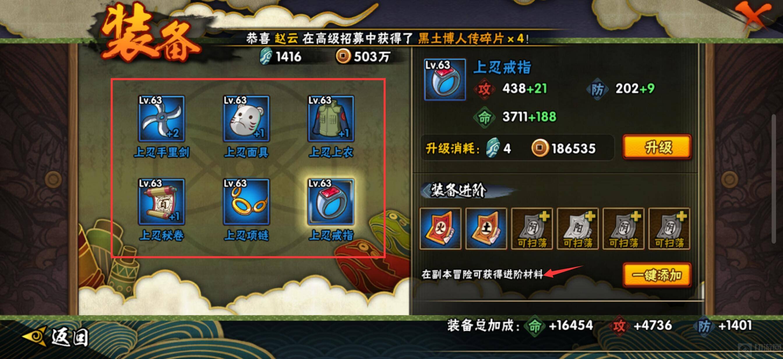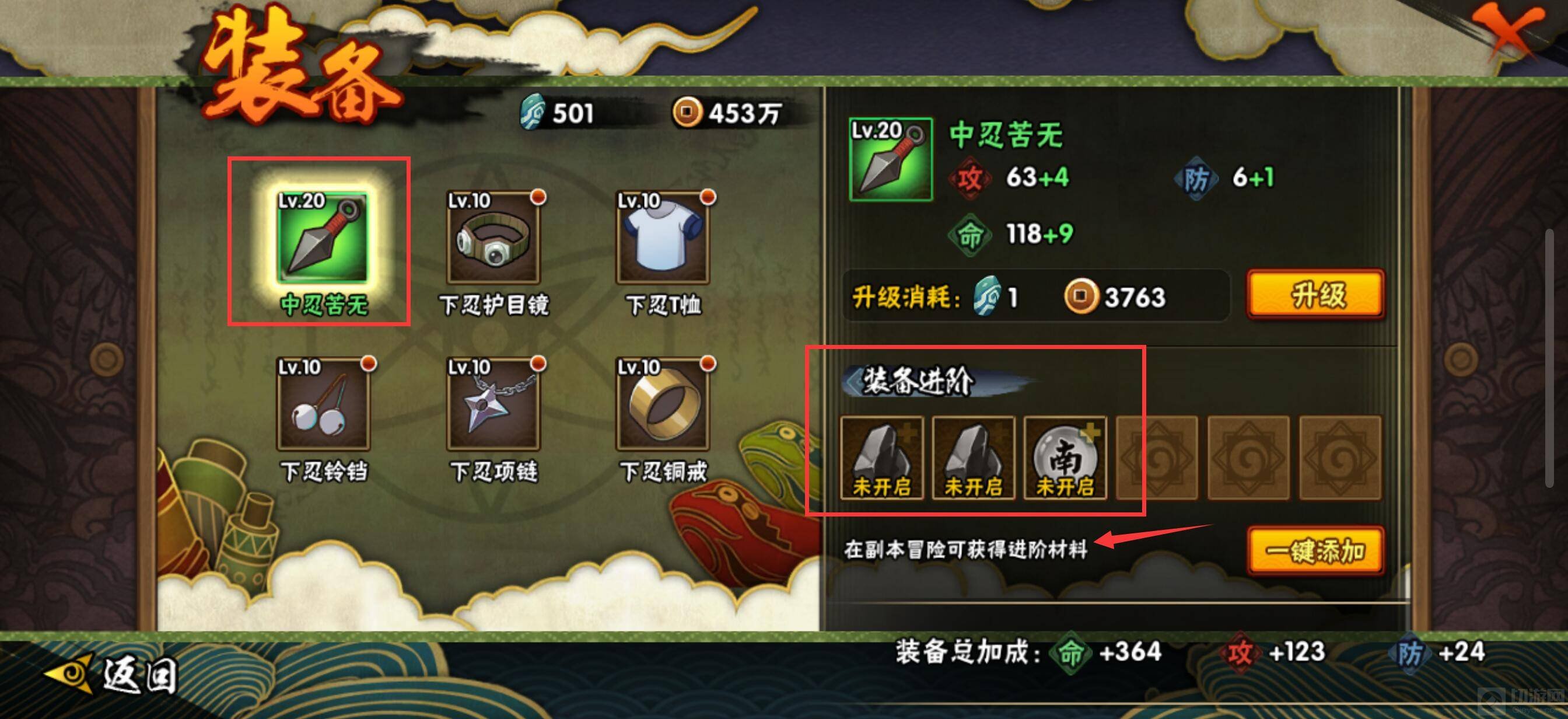 以上就是在火影忍者中装备进阶蓝色的方式,可以帮助到大家,祝大家游戏愉快!