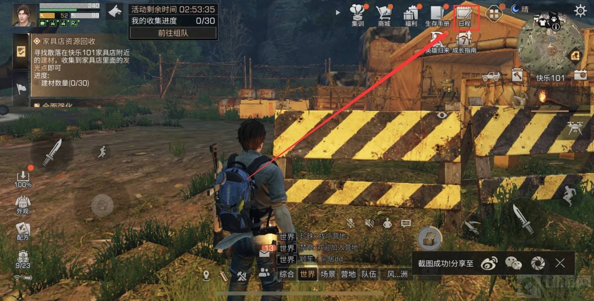 明日之后日程宝箱在哪?在游戏中有部分玩家对此还不太了解。接下来让为大家介绍一下吧。 明日之后日程宝箱位置: 1、进去游戏后,点击右上角地图旁边的日程图标。 2、然后在下图标注地方可以看到日程宝箱,执勤