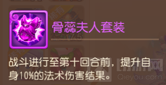 受自身“前10回合提升10%法术伤害结果”的套装效果影响,骨蕊夫人一般都会被安排至首发出场。
