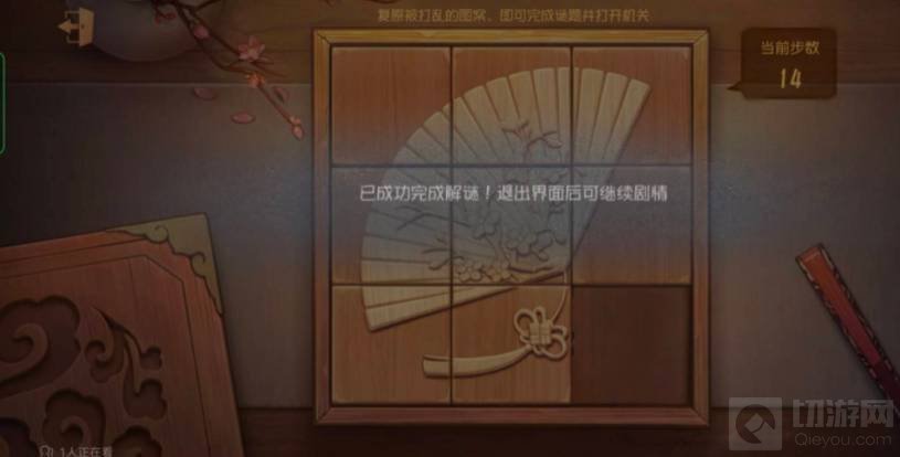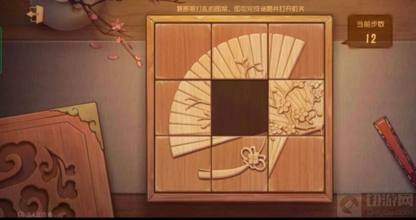 1、九宫格其实就是皮影箱里的拼图,进入到扇子拼图这个页面,看到顺序是打乱的,这就需要把他复原,在拼图的时候是有提示的,在滑动的时候可以看到每一块拼图都有对应的位置提示的。