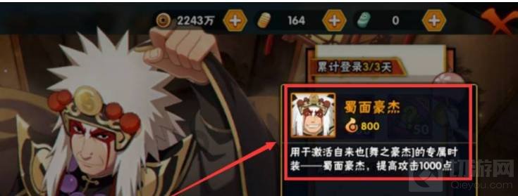 2.奖池上架新忍者自来也‘舞之豪杰’及其限定使用的传说时装蜀面豪杰和主场景妙木山。