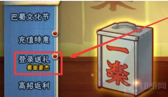 1.先在活动界面点击左侧的登陆送礼,登陆好礼界面累计登陆7天即可获得豪杰自来也。