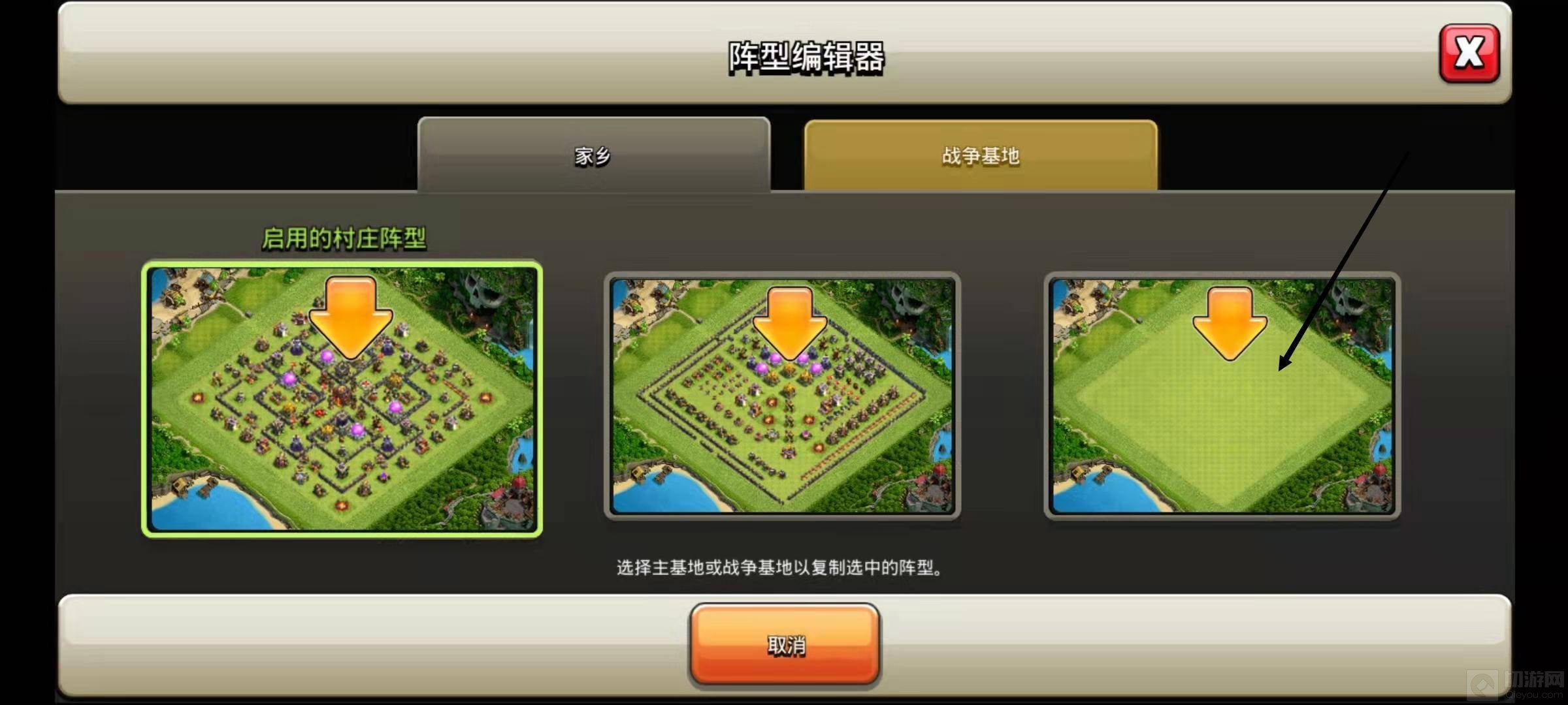 2、这时弹出复制到你的阵型编辑器里,可在家乡或者战争基地选择一个进行粘贴,已有编辑好的阵型将会被替换。