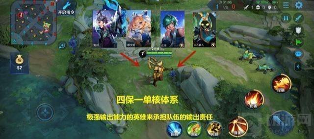 3、养猪流的核心玩法就是其余4个队友围着射手来打,射手开局就快速发育,到处蹭线,基本是2条线 一片野区,利用经济优势形成装备碾压和伤害碾压。后羿吃三路经济,其他人保护后羿,让后羿快速发育。