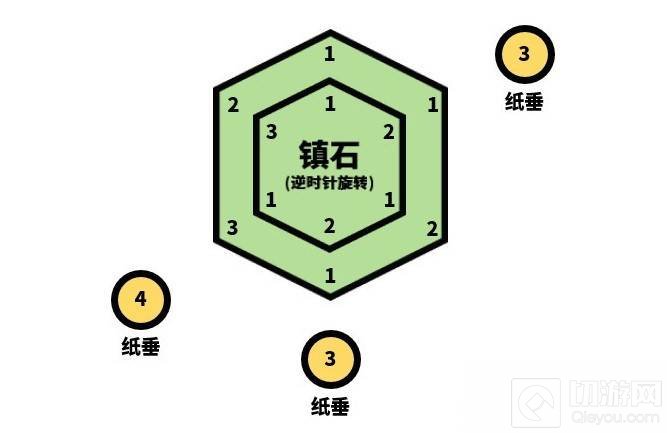1、转到第三个镇石时,将上层转动三次,然后将下层转动五次就可以将镇石解开。