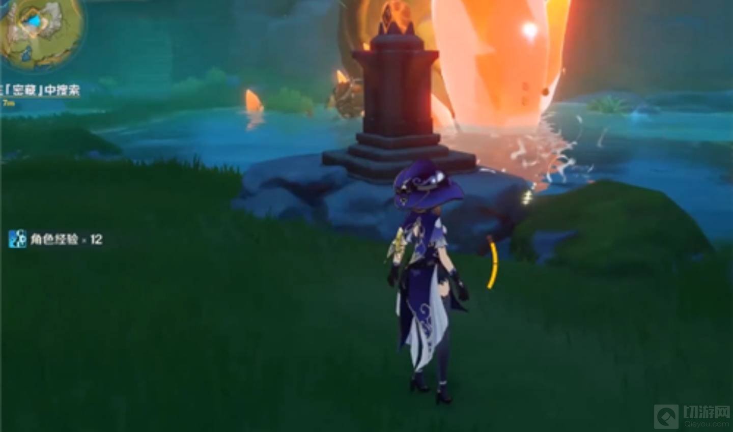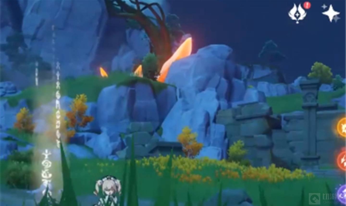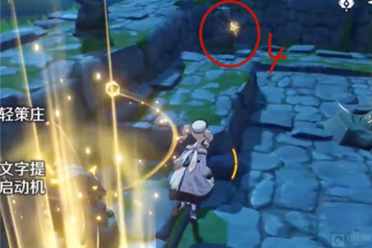 4、前往遗迹寻找碎片:第三处解谜位于轻策庄南边的平原上的一处遗迹,解谜方法是在周围寻找三个发光的巨大岩晶石并启动那里的机关。