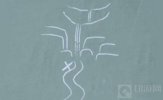 这个任务的线索就在大编钟的后面的山壁上,壁画显示编钟在三个Y形石柱的旁边。把我们的视角往后调,这个时候可以看到这三个Y形石柱了。
