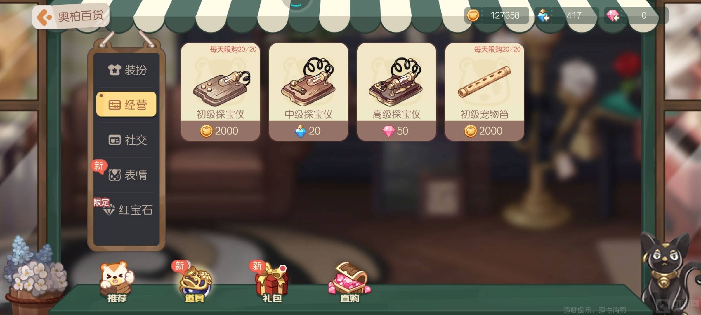 1、金币是可以用来购买道具的,比如探宝仪,宠物笛。