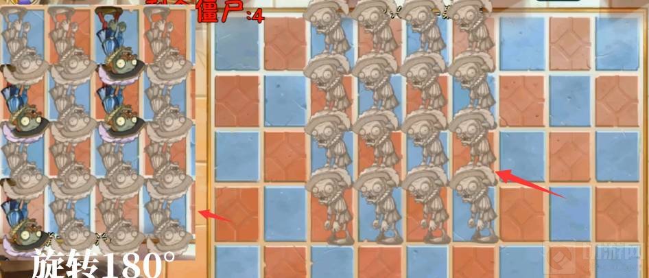 4、第四波照着左边僵尸的位置敲击。