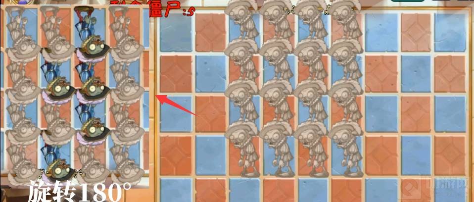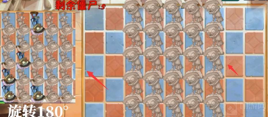 5、第五波照着左边僵尸的位置敲击。
