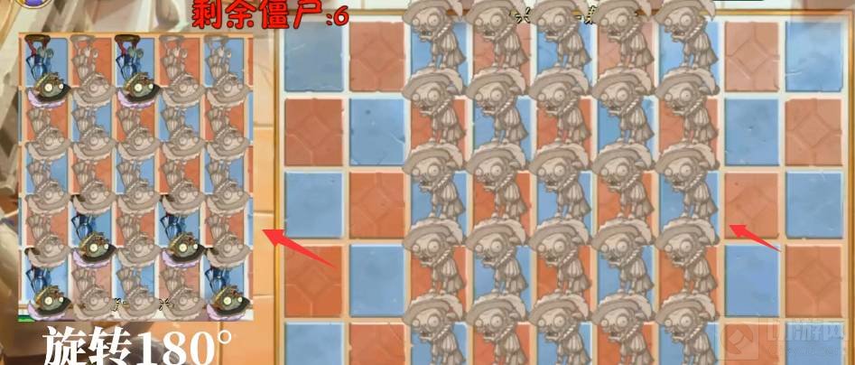 6、第六波照着左边僵尸的位置敲击。