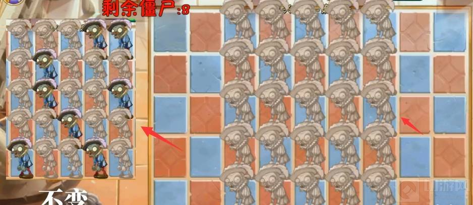 8、第八波照着左边僵尸的位置敲击。