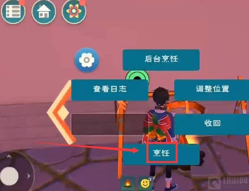 2.走到烹饪锅的旁边后,点击进入烹饪。