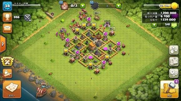 1.当你得到系统的提示要在仓库中领取战利品时,只需点击玩家之间的部落城堡。然后点击上面浮现的金币和宝石图标。