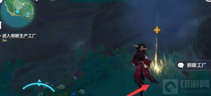 3.然后靠近发光的位置就是邪眼工厂的入口了,点击进入就可以。