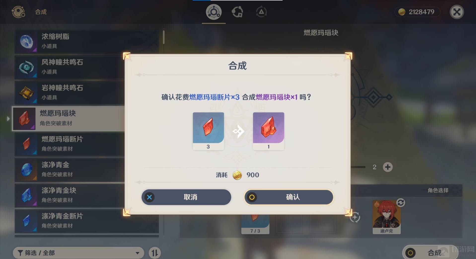 3、点击合成台,进入合成界面,找到燃愿玛瑙块合成。