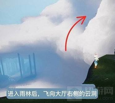 1、进入雨林后,飞向大厅右侧的云洞。