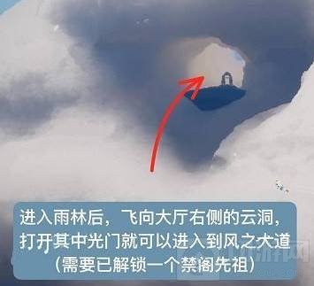 2、进入雨林后飞向大厅右侧的云洞,打开其中光门就可以进入到风之大道(需要已解锁一个禁阁先祖)。