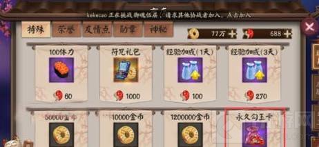 4.再在“特殊”中可以看到“永久勾玉卡”,点击一下。