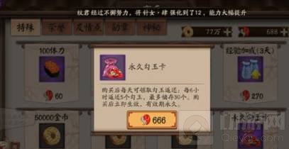 5. 最后弹出窗口提示:消耗666个勾玉即可获取“永久勾玉卡”。