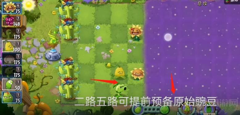 需要在二路和五路上面开始布置豌豆射手就可以了。