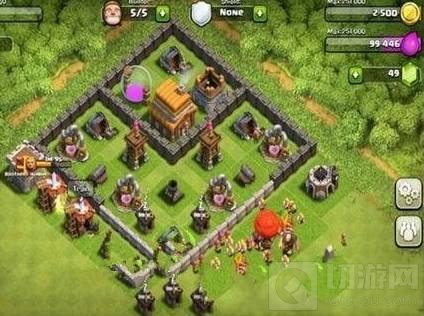 1.部落冲突4本阵型一:初级防御为根本。虽然等级低的城墙很容易就被攻破,但是前期城墙的建造可以为各个设施建筑规划好安置点,方便后期大摆防御好阵。