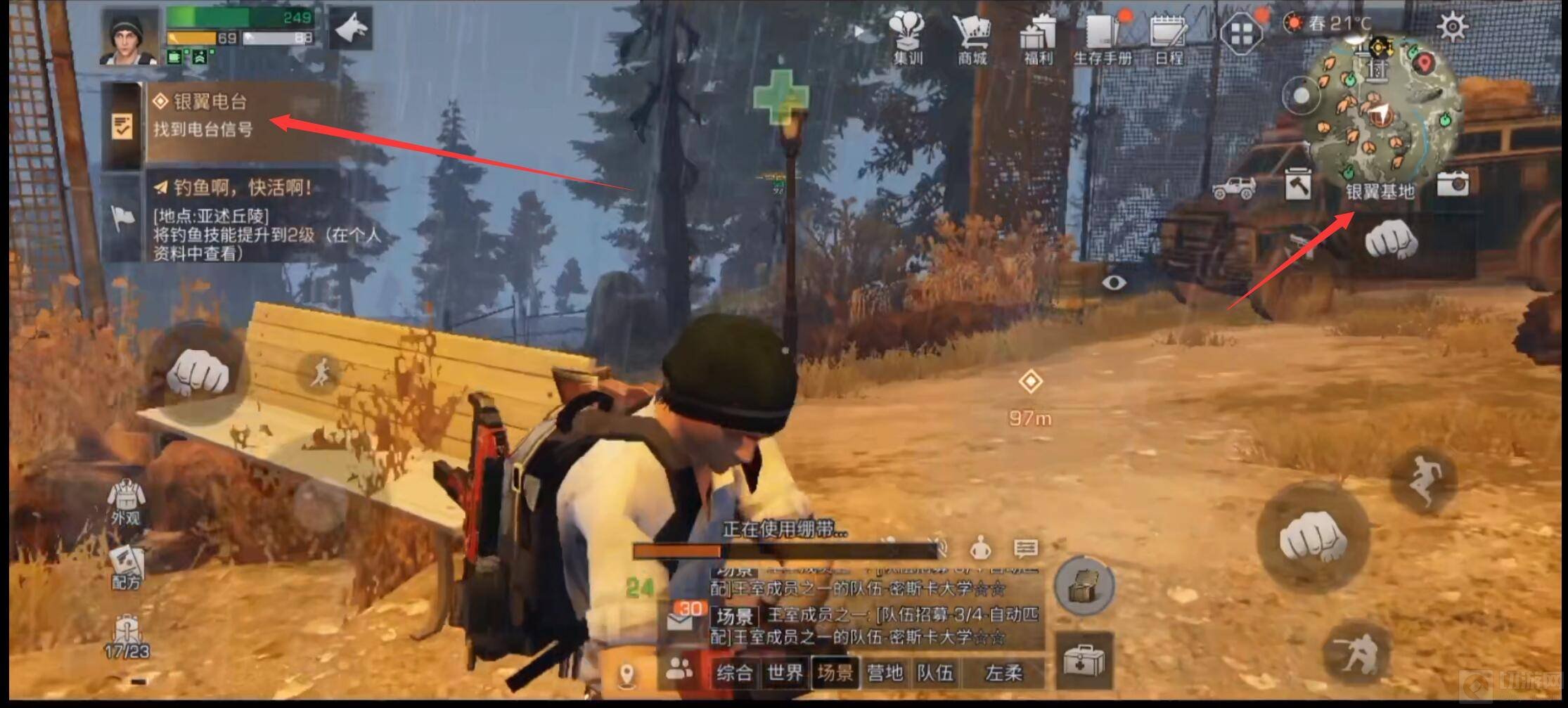 2、到达银翼基地地图后,可以看到在左侧任务栏中需要寻找银翼电台信号,根据任务栏追踪过去。