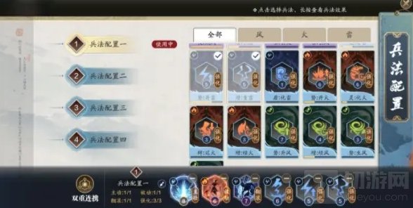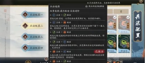 火雷的双重连携不仅可以增加20%的伤害,还可以降低目标30%的攻击。可谓是攻守兼备,非常适合对战boss。如果选择火雷组合那么建议注意除了【灵·化火】增加火灵的存续时间外,其他技能全部选雷。