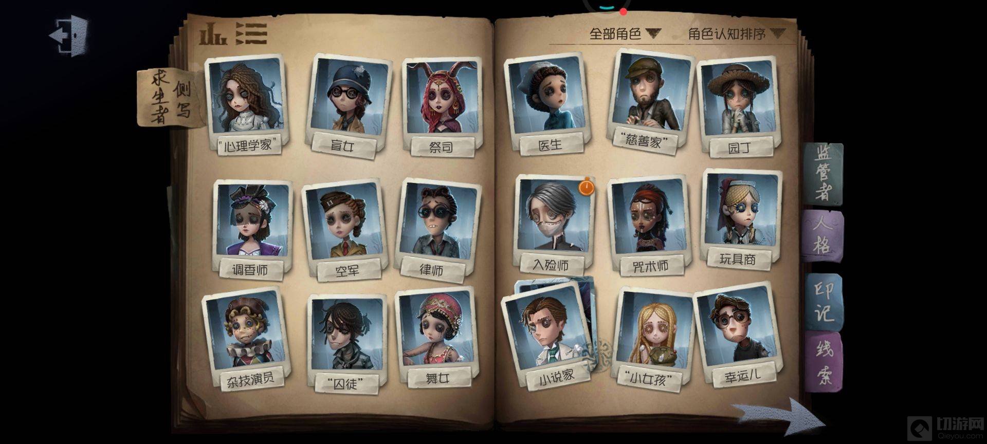 1.先打开求生者或监管者日记,然后点击右侧的人格。