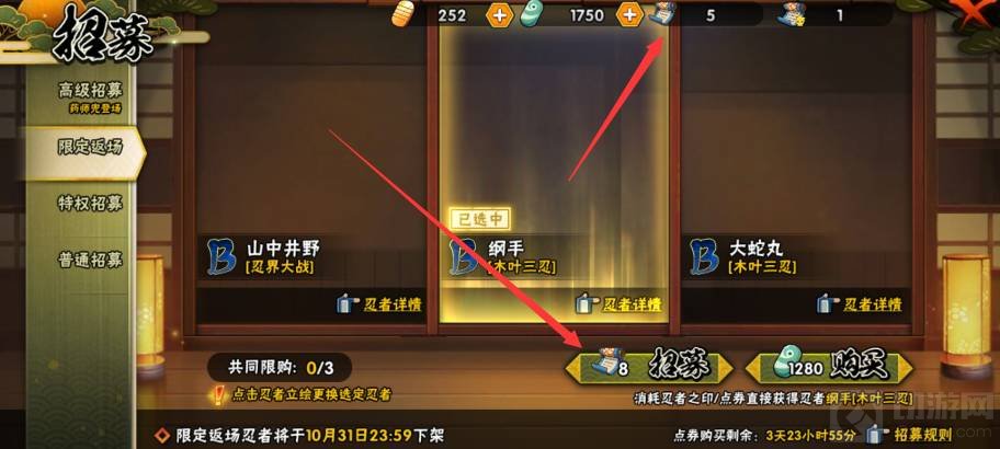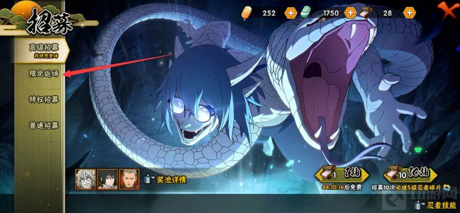 3、然后进入限定返厂界面,选择你喜欢的忍者点击下方招募即可。