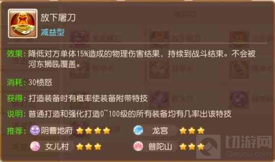 狮驼岭作为物理门派之一,放下屠刀、圣灵之甲等限制性的特技,自然也是有效果的。并且早使用早收益,进入战斗后立即拉满状态是针对狮驼岭伤害的必要措施。