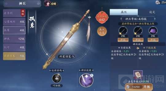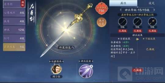 除了左手剑外,其余神兵质料提升小等级(小点)可获得11~12点功力,百晓生可获得19~20功力。质料升级可以提升30+功力,其中百晓生为60+功力。所以,如果是为了功力,那么建议所有神兵平均提升等级。如果是为了属性,优先提升孤鸾/神术的等级。