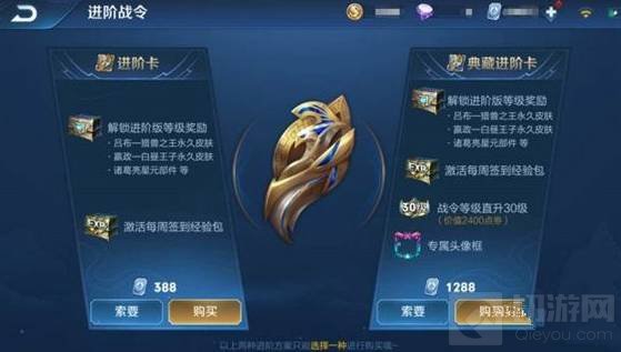 1.荣耀战令价格:388和1288只能选择一个,只能买一次。荣耀战令等级提升只有两个选择,肝或者氪,当然升级最快的就是氪金了。