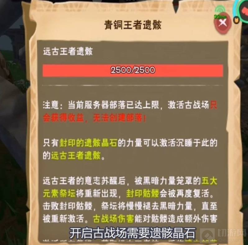 5、开启古战场需要遗骸晶石,打古战场会得到丰厚的奖励以及创建部落的资格。