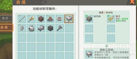 2.然后打开背包合成界面,消耗绳子和岩石块,制作空的工匠台。
