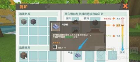 5.接着打开黄铜熔炉,放入铁合金矿石,得到。