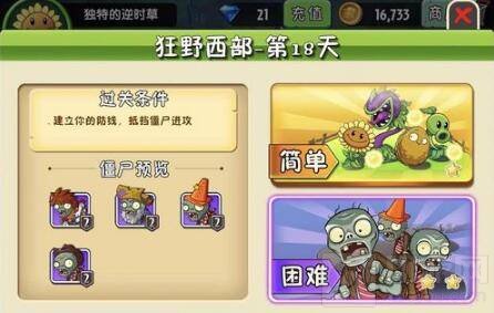 植物大战僵尸2狂野西部第18天困难怎么过? 植物大战僵尸2狂野西部第18天困难把很多人难住了。接下来让为大家详细介绍一下吧。 植物大战僵尸2狂野西部第18天困难通关教学 1、先根据僵尸的特点来选择植物