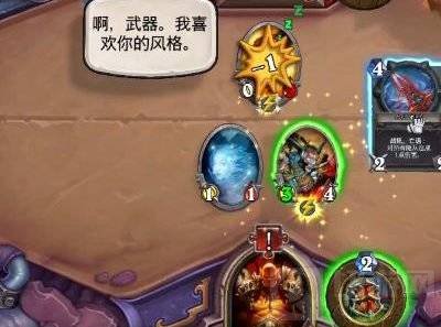 然后装备血刃剃刀,要触发战吼对所有随从造成1点的伤害。